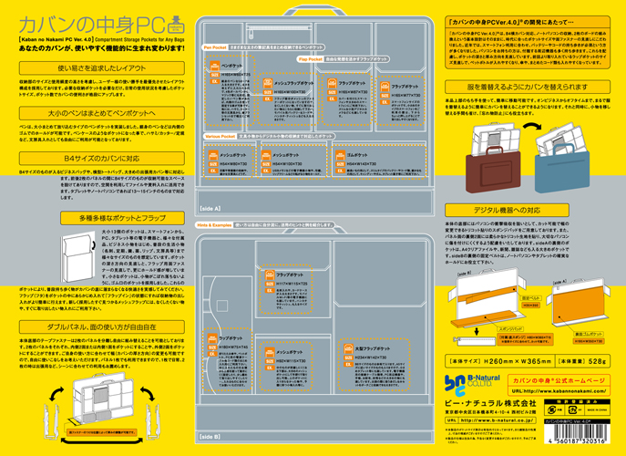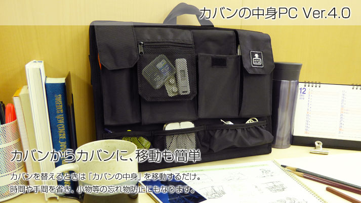 「カバンの中身PC Ver.4.0」®は、B4横カバン対応、ノートパソコンの収納、