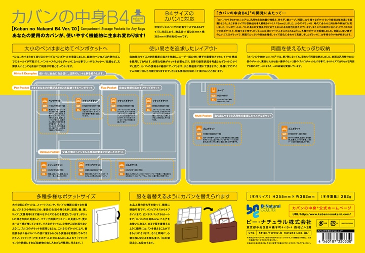 「カバンの中身B4Ver.7.0」®は、汎用性と収納量の確保と、